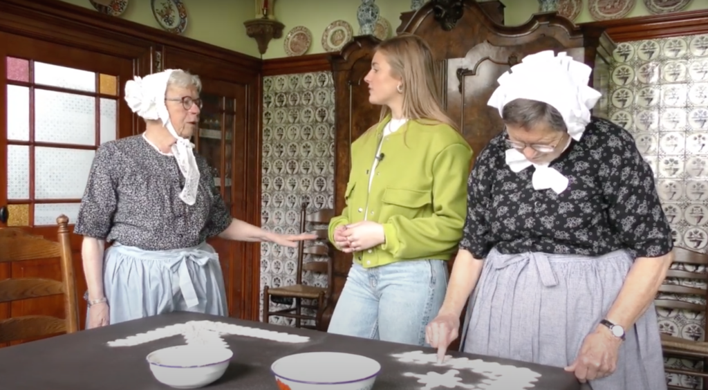 Als zaterdagavond iedereen op bed lag, strooide de boerin een tapijt van zand op de schoongeschrobte vloer. Een zandtapijt dat bestond uit mooie vormen van bloemen, bladeren en andere figuren. Op zondag kwamen de noabers (buren) langs om de zandtapijten te bekijken. Vroeger had dit ambacht dus een sociale functie voor de mensen uit het dorp. In de video wordt meer uitgelegd over deze bijzondere ambacht.
