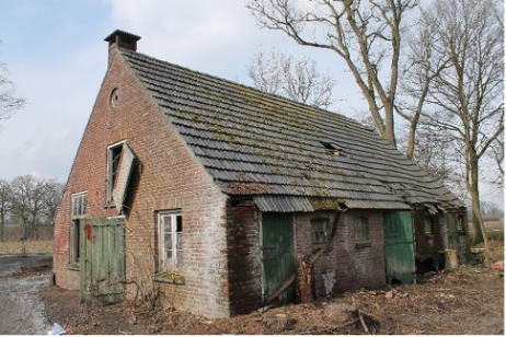 Hierboven is te zien hoe ‘t Kokhuuske en de pinkenstal in de loop der jaren in verval zijn geraakt. De muren stonden nog deels overeind, maar de staat van het dak, de deuren en ramen was buitengewoon slecht.